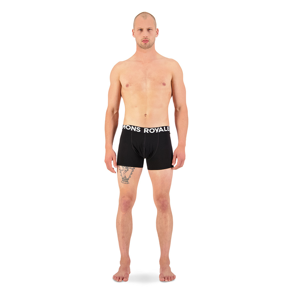 Dzięki zastosowanym materiałom męskie bokserki Mons Royale zapewniają optymalną termoregulację i oddychalność.