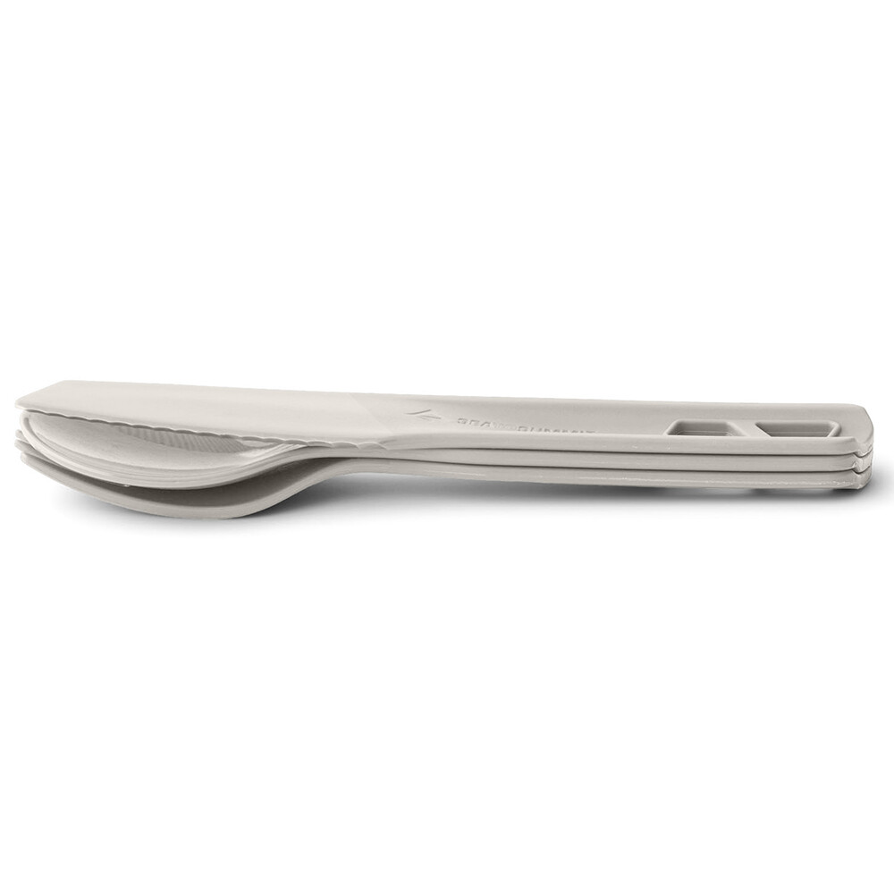 Sztućce podróżne Sea to Summit wykonane z trwałego i bezpiecznego dla zdrowia polipropylenu. Zestaw zawiera widelec, nóż i łyżkę. Sztućce można połączyć ze sobą, aby stworzyć rozszerzoną wersję, która jest łatwiejsza do jedzenia z głębokiego naczynia (garnka) lub świetnie nadaje się do jedzenia odwodnionej żywności prosto z pojemnika.