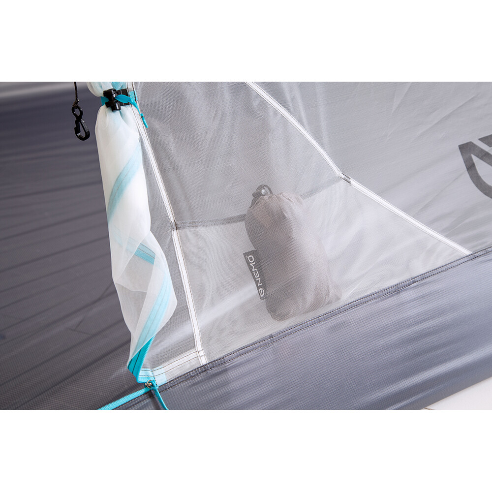 Ultralekki namiot Hornet Elite Osmo od Nemo to najlepszy wybór dla wszystkich fanów minimalizmu dzięki wyjątkowo niskiej wadze i doskonałej składalności. Spakowany namiot bez kijków mieści się w dolnej kieszeni plecaka turystycznego, razem ze śpiworem. Waga zaledwie 657 g nie umniejsza komfortu i przestrzeni wewnętrznej. Dzięki specjalnym klipsom Flybar™ wysokość wewnętrzna wynosi 98 cm, dzięki czemu można wygodnie przebrać się lub spakować swoje rzeczy. Wewnątrz namiotu znajdziesz mnóstwo kieszeni do przechowywania sprzętu, w tym specjalną przegrodę na czołówkę, która rozprasza światło równomiernie w całej przestrzeni, niczym latarnia. Wejście do namiotu wewnętrznego wykonane jest z nieprzezroczystej siatki, która zapewnia dużo prywatności i działa również jako moskitiera.