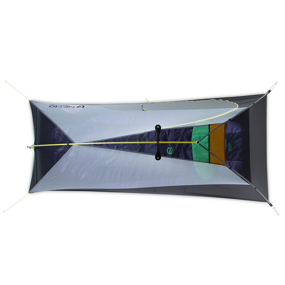 Ultralekki namiot Hornet Osmo firmy Nemo został zaprojektowany specjalnie z myślą o długodystansowych wędrówkach. Skrócone segmenty kijków umożliwiają spakowanie go do dolnej kieszeni plecaka turystycznego wraz ze śpiworem. Cały namiot jest bardzo lekki, waży zaledwie 822 g, ale jednocześnie bardzo przestronny. Dzięki specjalnym klipsom Flybar™ wysokość wewnętrzna wynosi 98 cm, co pozwala na wygodne przebranie się lub spakowanie rzeczy. Wewnątrz namiotu znajduje się wiele kieszeni do przechowywania sprzętu, w tym specjalna komora na czołówkę, która rozprowadza światło równomiernie w całej przestrzeni, jak latarnia. Wejście do namiotu wewnętrznego wykonane jest z nieprzezroczystej siatki, która zapewnia dużo prywatności i działa również jako moskitiera.