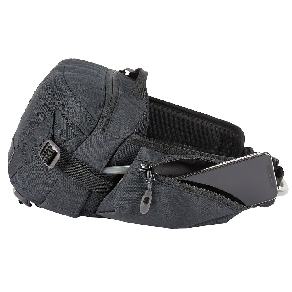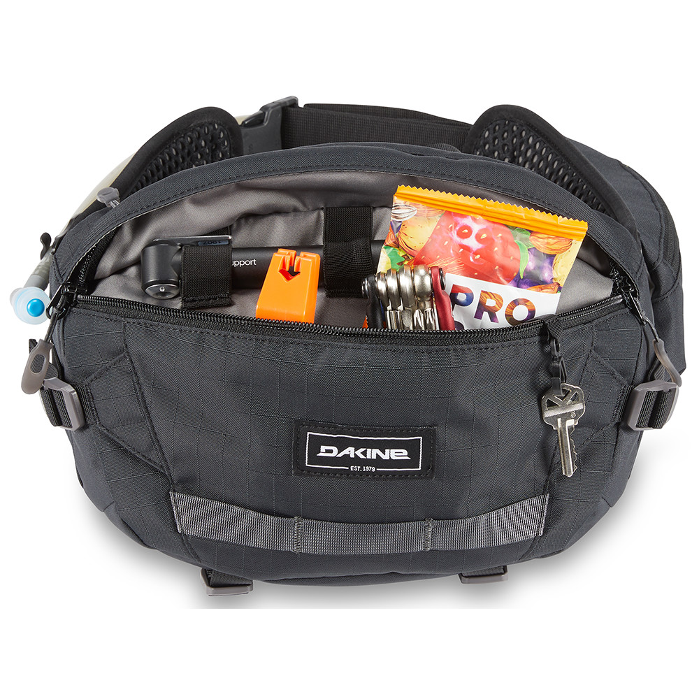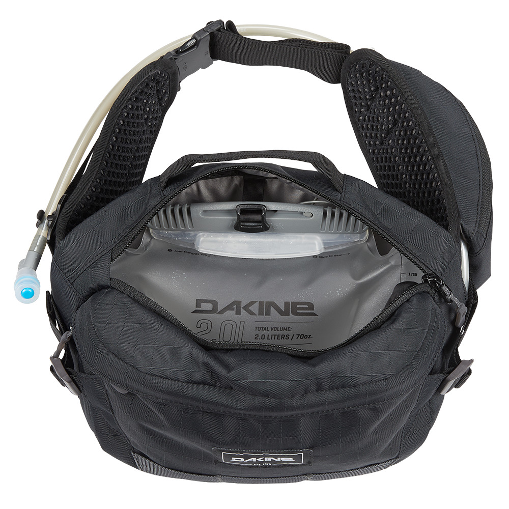 Dzięki pojemności porównywalnej z małymi plecakami, Hot Laps 5L Dakine to wydajna nerka z dwulitrowym zbiornikiem biodrowym Hydrapak® 3D i dodatkową przestrzenią do przechowywania różnorodnego sprzętu podczas przejażdżek. Na wyściełanym pasie biodrowym znajduje się polarowa kieszeń, w której można wygodnie przechowywać telefon lub okulary przeciwsłoneczne. Główna komora ma dużo miejsca na narzędzia, jedzenie i lekki sprzęt. Oddychający panel tylny AirFlow zapobiega przegrzaniu pleców, minimalizując pocenie się.
