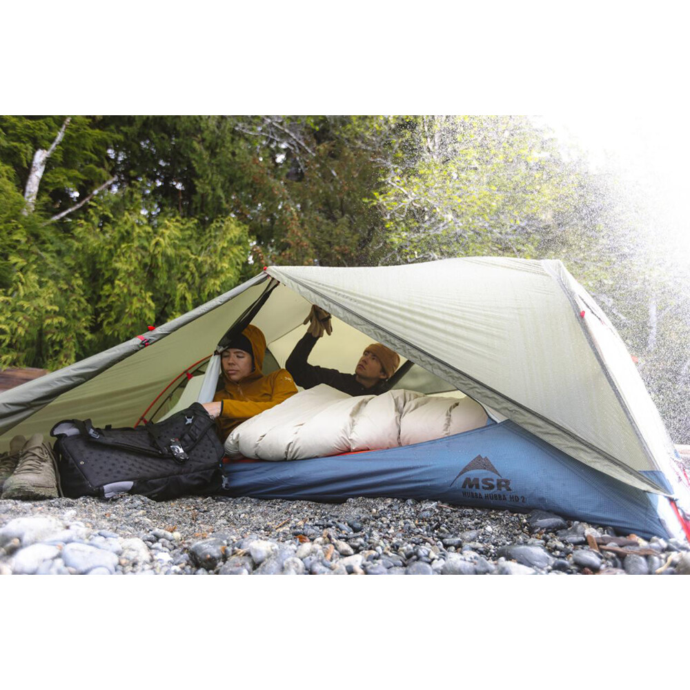 Namiot Hubba Hubba HD 2 firmy MSR to ultralekki namiot turystyczny dla dwóch osób, który łączy w sobie wysoką odporność na warunki atmosferyczne z przestronnym wnętrzem. Został zaprojektowany jako 3-sezonowe schronienie, w którym ważna jest niezawodność przy zmiennej pogodzie. Wytrzymała konstrukcja słupów DAC NFL zapewnia stabilność nawet podczas wiatru i deszczu, a cięższe materiały i minimalne użycie siatki zwiększają ochronę przed żywiołami.