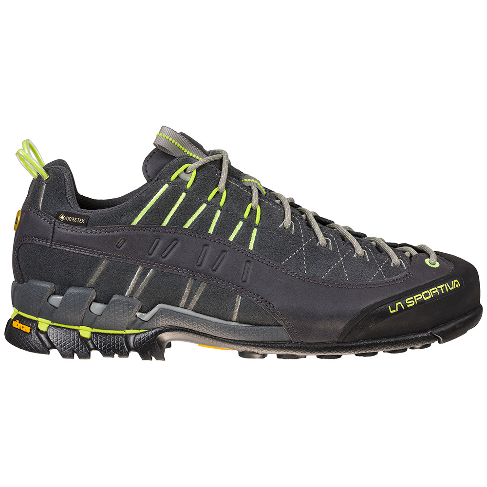 Techniczne buty z podeszwą o wysokiej przyczepności i przedłużonym sznurowaniem, na których naprawdę można polegać podczas chodzenia po skalistym terenie (Via Ferata, dojścia pod tereny wspinaczkowe). Skórzana cholewka gwarantuje wysoką odporność na ścieranie i przenikanie wilgoci z zewnątrz. Wodoodporność dodatkowo zwiększa zastosowanie membrany GORE-TEX®, która zapewnia również optymalny komfort termiczny wewnątrz buta. Ponadto, dzięki dopracowanemu ergonomicznemu krojowi, buty Hyper GTX idealnie dopasowują się do stopy.... tak, że nie można ich zdjąć.