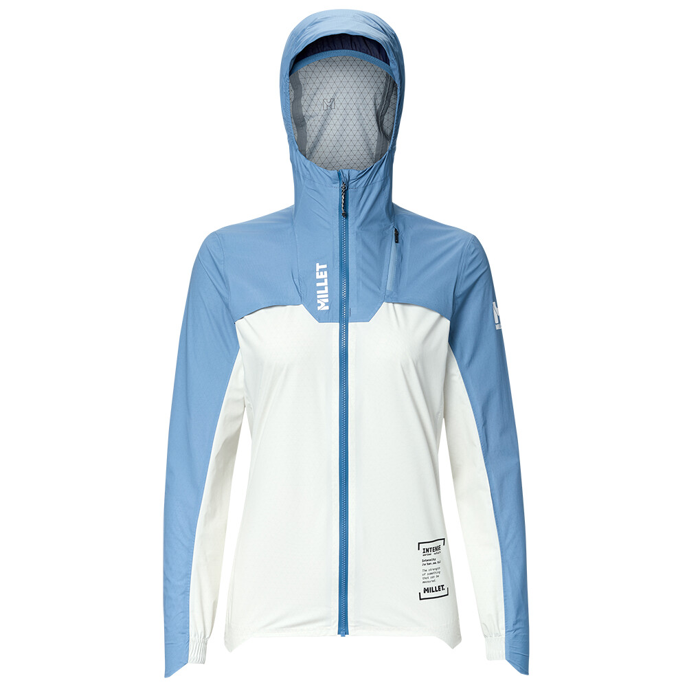 Ultralekka damska kurtka Intense Pro 2.5L Jacket francuskiej firmy Millet zapewnia idealną ochronę podczas biegów trailowych.