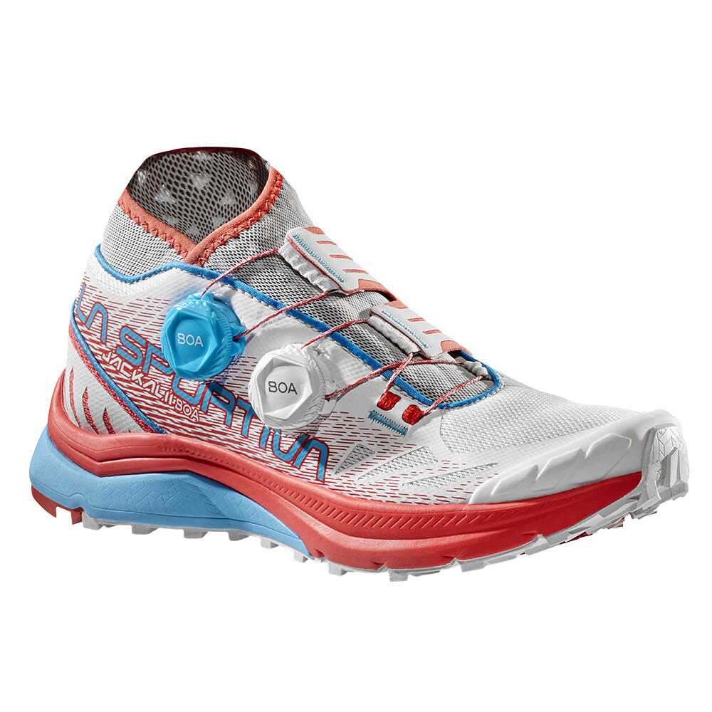 Damskie buty do biegania w terenie Jackal II BOA marki La Sportiva dosłownie wrosną w Twoją stopę. Podwójna klapa wykonana z trójwarstwowej mikrofibry i dwustrefowe szybkie sznurowanie zapewniają idealne dopasowanie do stopy. System BOA umożliwia precyzyjną regulację dokręcenia buta w razie potrzeby.