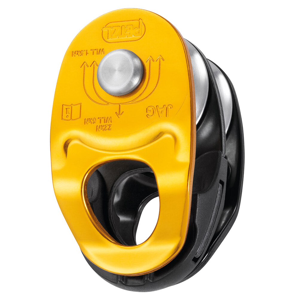 Wydajny bloczek arborystyczny z łożyskiem kulkowym. Dzięki trzem otworom kotwiącym nadaje się do technik wyjściowych z prusikami arborystycznymi.