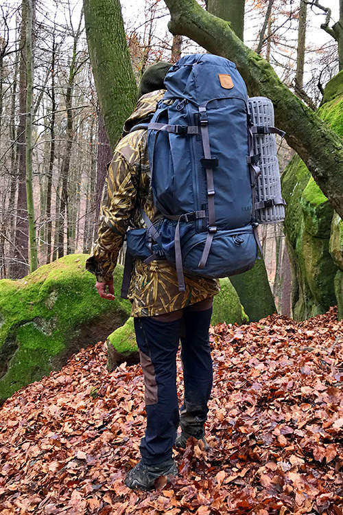 - Jeśli wędrujesz po stromym terenie, warto nieco obniżyć środek ciężkości plecaka.