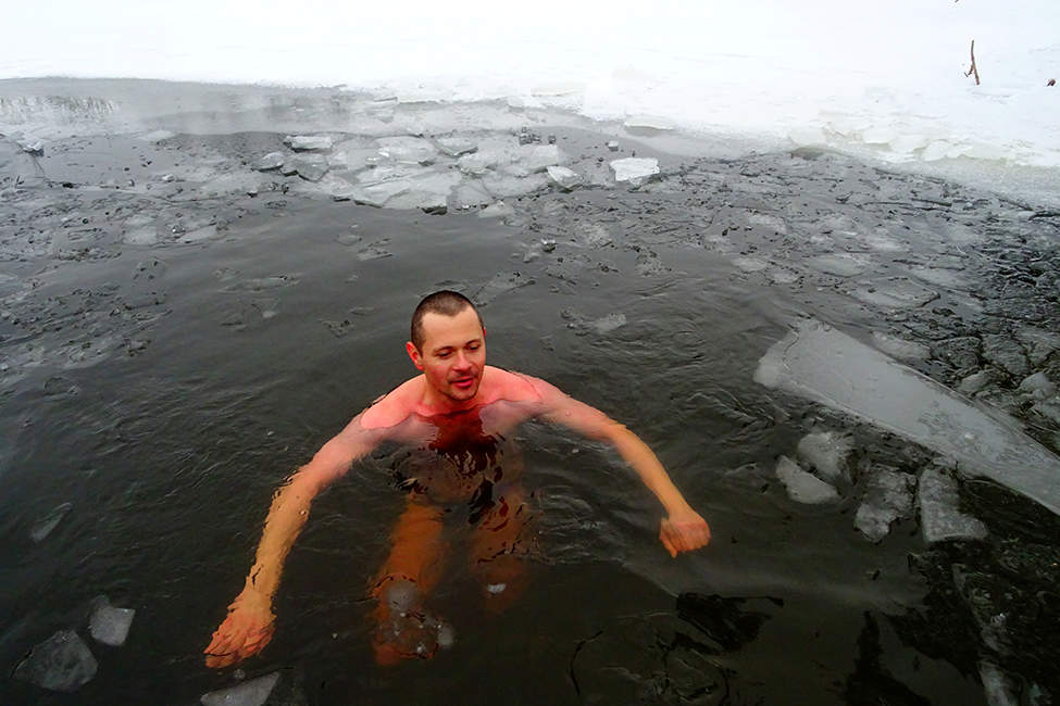 Pewnego styczniowego poranka zabrałem psa i poszedłem nad pobliski staw. Lód był zdeptany poprzedniego dnia, ale na powierzchni zaczęła pojawiać się cienka skorupa. Nigdzie żywej duszy, tylko ja i piękna cisza, żadnego wiatru, nawet zapomniane liście olchy nie drżały. Pies siedział spokojnie z boku, a ja zacząłem powoli zanurzać się w wodzie. Zanurzyłem się po szyję, stojąc stopami na dnie i starając się nie czuć zimna wokół stóp. Czekałem, aż powierzchnia i ja się uspokoimy. Po prostu stałam w wodzie, oddychając spokojnie, patrząc na staw, ciesząc się ciszą i obserwując lecący śnieg. W tej magicznej chwili byłem jakoś bliżej siebie i natury. Z tego powodu hartowanie w naturalnej wodzie jest dla mnie najlepszą rzeczą.