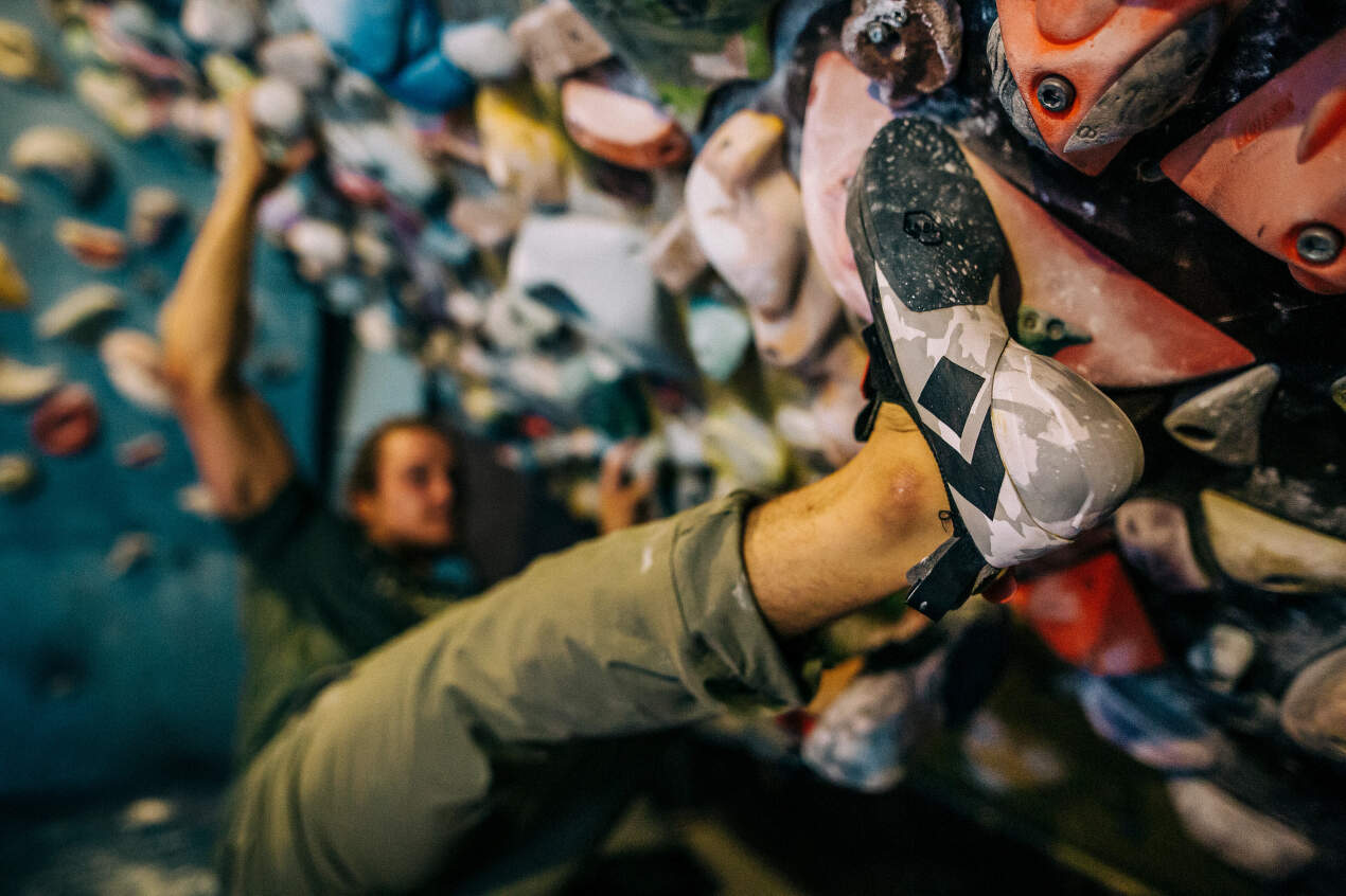 - W przypadku pionowych i lekko przewieszonych dróg technicznych lepsze są twardsze buty wspinaczkowe, które nie będą tak bardzo zwisać. Na małych stopniach będziesz w stanie zrobić znacznie więcej.