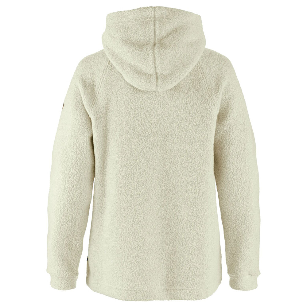 Damska bluza Kaitum Hoodie szwedzkiej firmy Fjällräven do noszenia na co dzień. Bluza jest wykonana z mieszanki wełny merynosów i materiału syntetycznego. Kaptur ma przyjemny mikropolar wykonany z materiału pochodzącego z recyklingu od wewnątrz i stylowe skrzyżowanie z przodu.