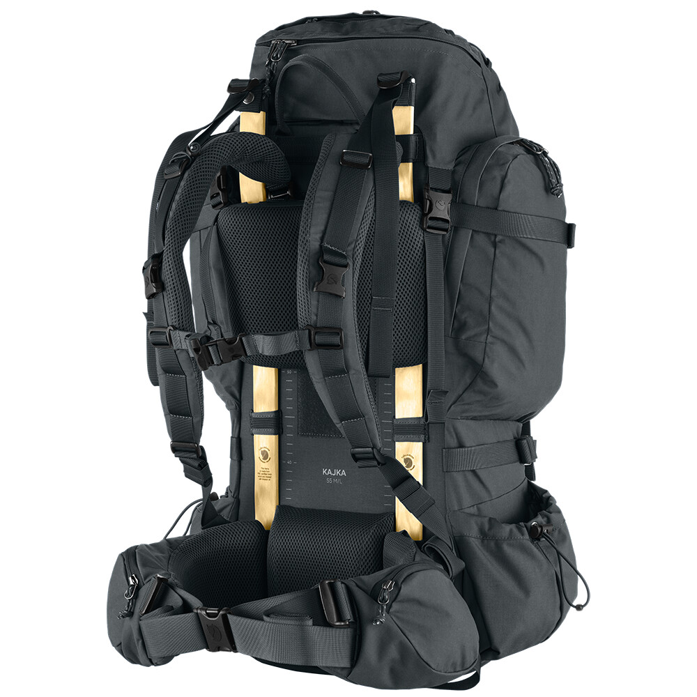 Plecak Kajka 55 M/L marki Fjällräven to niezawodny towarzysz wędrówek, który zachwyci wszystkich entuzjastów stylu życia na świeżym powietrzu. Teraz ma nowy design i wyróżnia się jeszcze lepszym komfortem, nie tylko dzięki lżejszej konstrukcji, ale także dzięki innowacyjnym funkcjom wsparcia, takim jak ergonomiczne paski na ramiona i bardziej regulowany pas biodrowy.