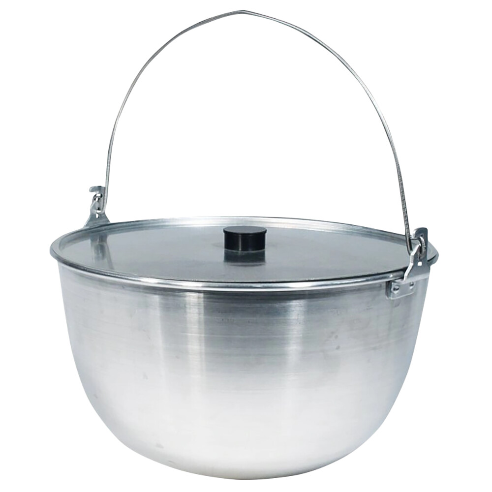 Garnek ze stali nierdzewnej z pokrywką i uchwytem na zawiasach, w kształcie umożliwiającym zawieszenie na statywie. Nadaje się do gotowania na kuchence turystycznej lub otwartym ogniu. Idealny do gotowania dla rodziny lub dużej grupy.