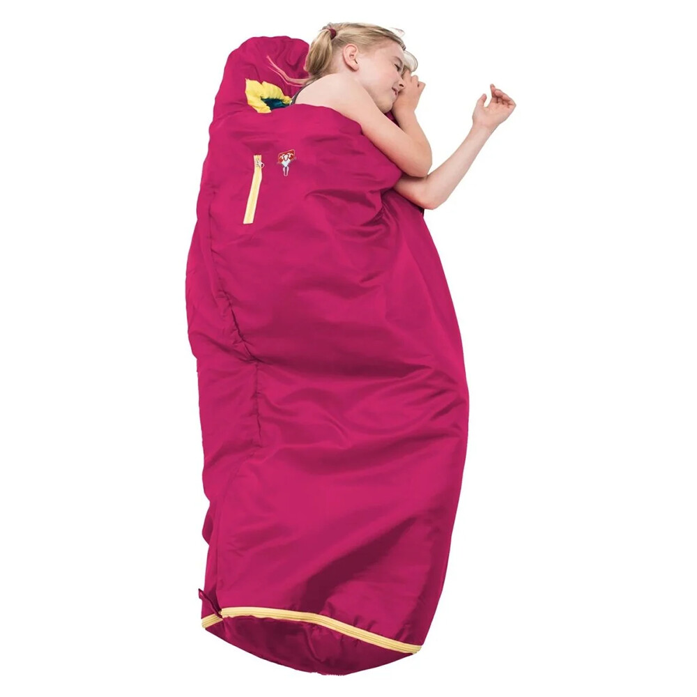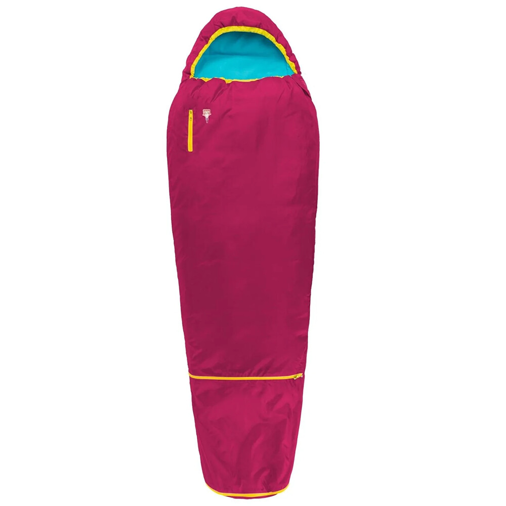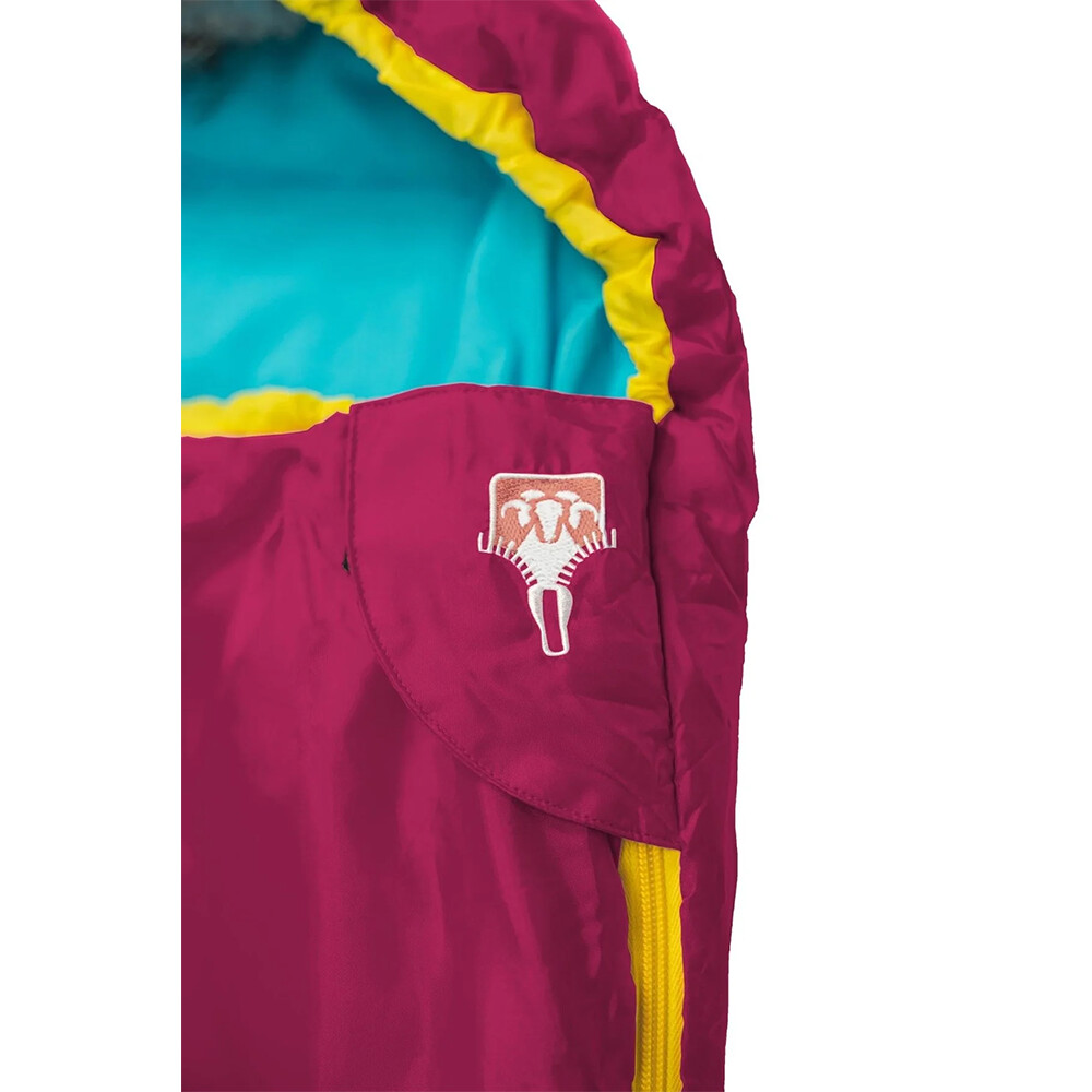 Śpiwór dla dzieci, odpowiedni dla wzrostu od 95 do 130 cm. Można go łatwo przedłużyć, rozpinając u dołu. Posiada ciepłe wypełnienie z mikrofibry, kaptur ściągany sznurkiem i zamki błyskawiczne po obu stronach dla wygodnego wchodzenia.