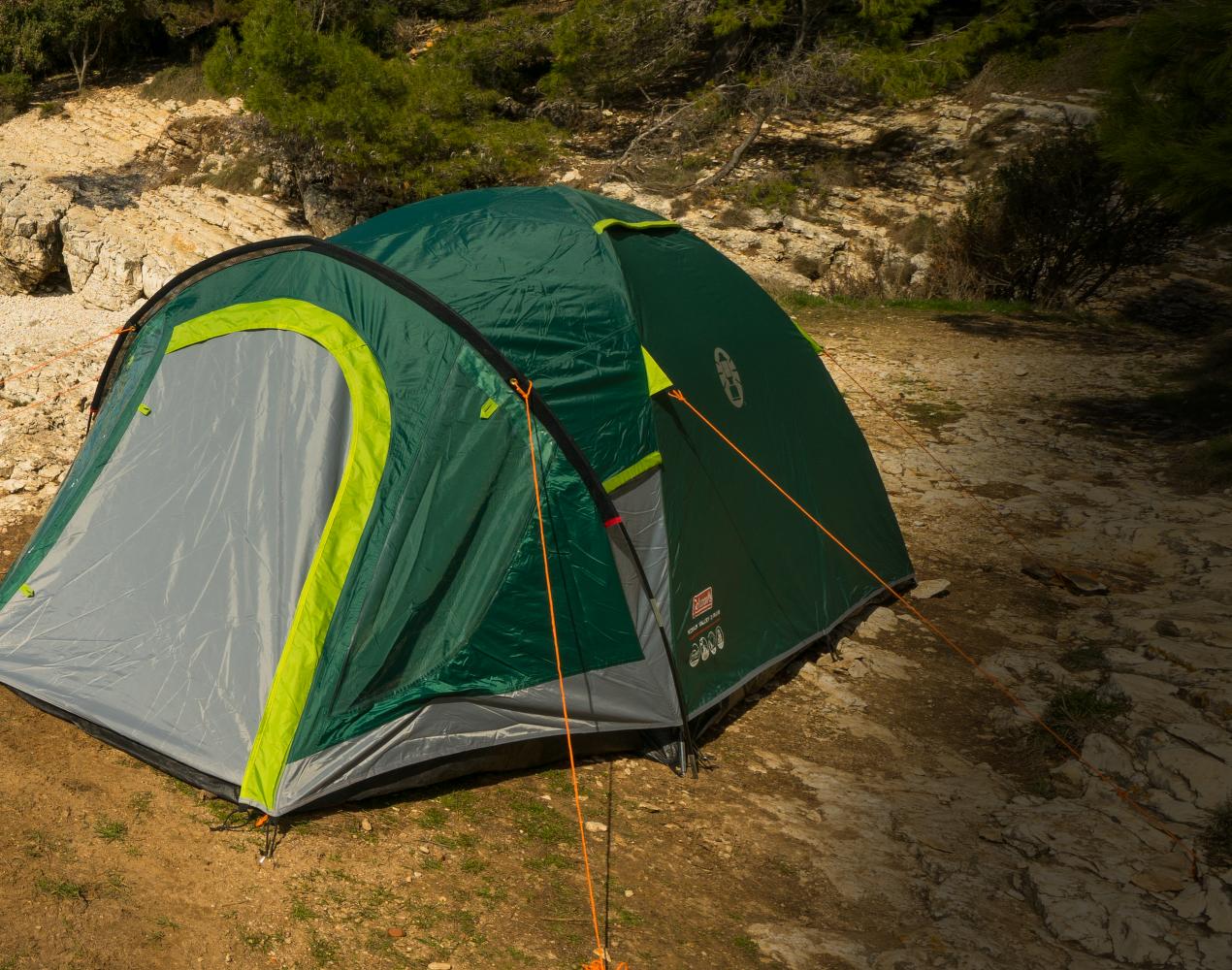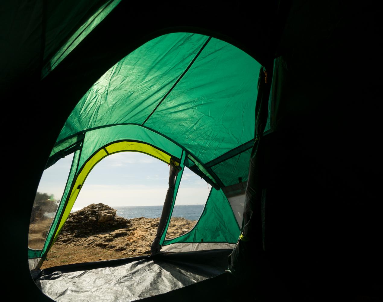 Namiot kempingowy z zaciemnioną sypialnią, która chroni przed światłem.