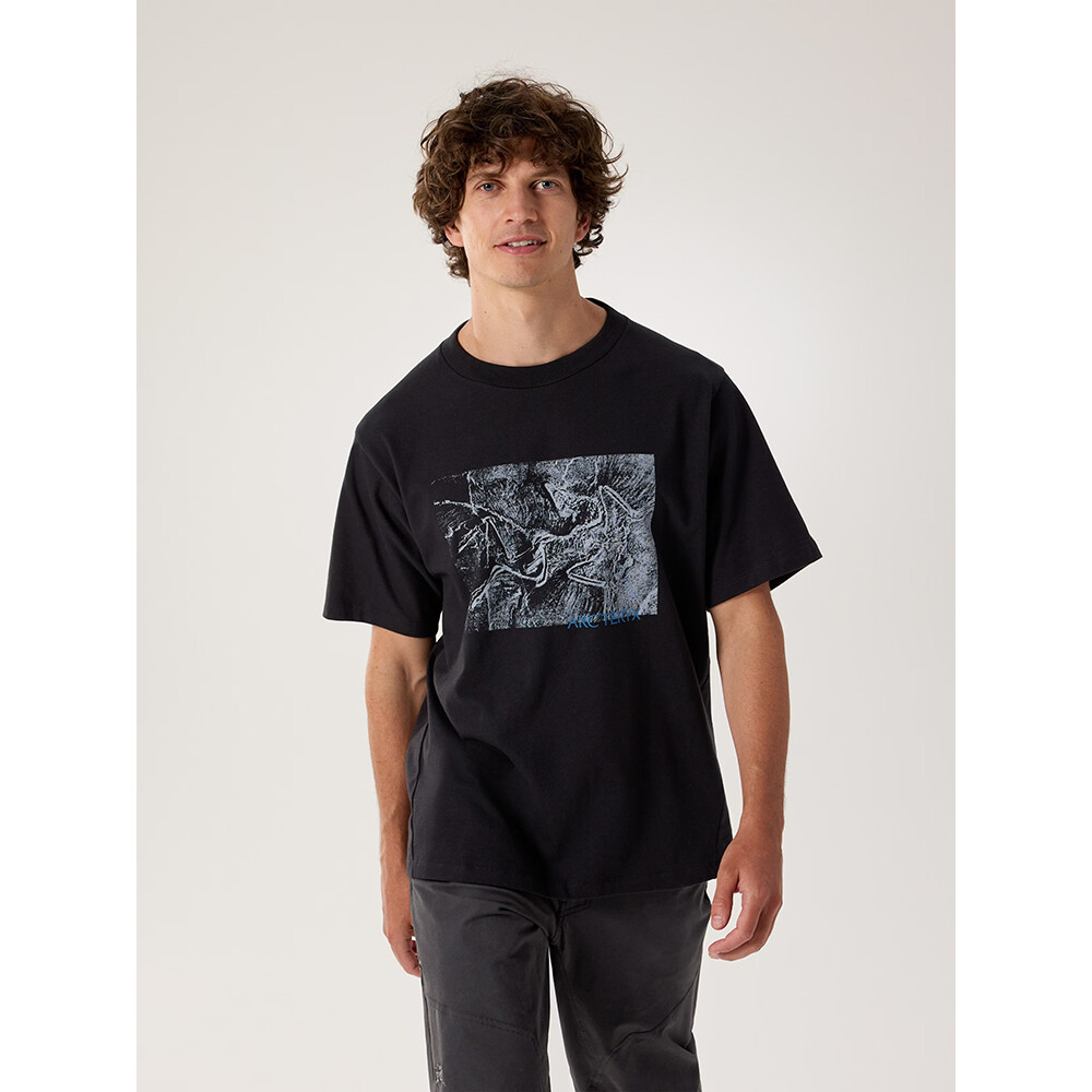 Męska bawełniana koszulka Kragg Cotton Lithographica SS od kanadyjskiej marki Arc´teryx. Bawełna o wyższej gramaturze (240 g/m²) jest trwała i wygodna. Na piersi znajduje się grafika jaszczurki Archaeopteryx.