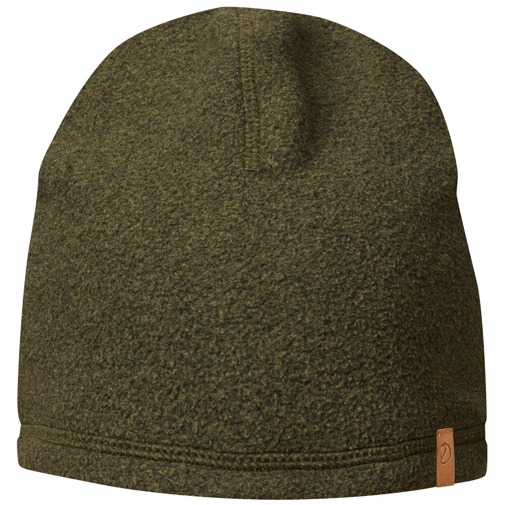 Przytulna i ciepła czapka Lappland Fleece Hat szwedzkiej firmy Fjällräven. Wykonana jest z materiału syntetycznego pochodzącego z recyklingu. Czapka ma wygodne płaskie szwy i ozdobne skórzane logo.