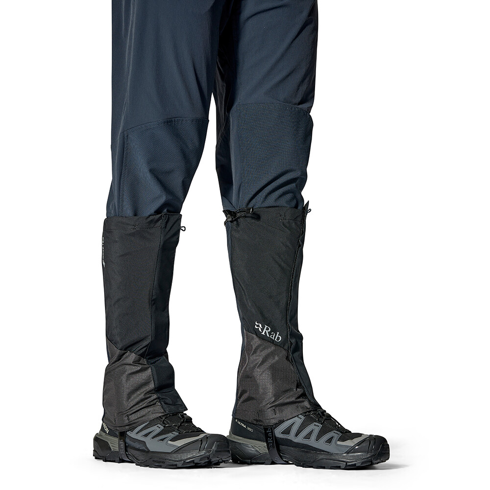 Buty Latok GTX marki Rab zostały zaprojektowane tak, aby wytrzymać rygorystyczne warunki panujące w wysokich górach. Mają wąski, dopasowany krój i pełne zapięcie na rzep z przodu, dzięki czemu można je łatwo założyć nawet w grubych zimowych rękawicach. U góry znajduje się sznurek ściągający, a z przodu zapięcie na rzep do zaczepienia sznurówek. Pasek pod butem jest również zapinany na rzep i można go łatwo zdjąć lub wymienić. Osłony mają wzmocniony materiał po wewnętrznej stronie kostek, aby zapobiec ich uszkodzeniu przez raki. Dzięki membranie Gore-Tex® są wodoodporne i oddychające. Idealny wybór na wędrówki po lodowcach, wspinaczkę lodową, wspinaczkę mikstową i wspinaczkę wysokogórską.