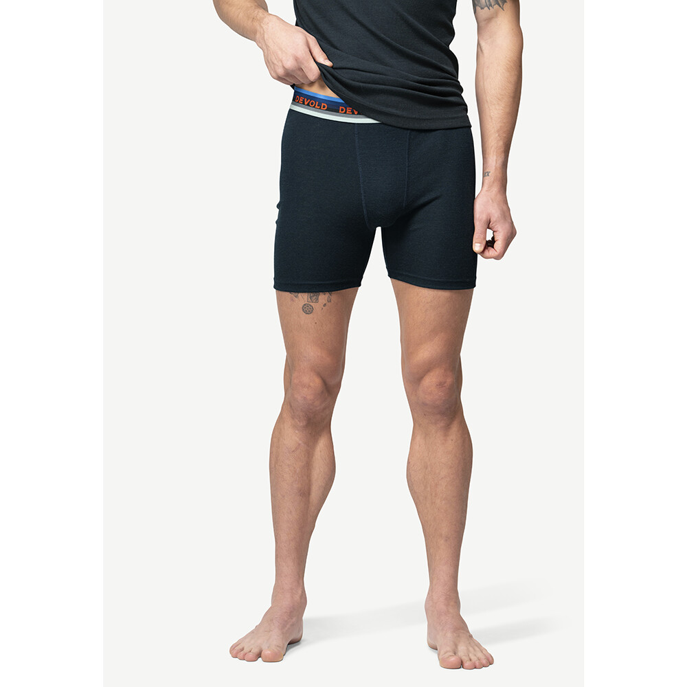 Wygodne męskie bokserki Lauparen Merino norweskiej marki Devold do noszenia na co dzień. Są lekkie, oddychające i zapewniają niezbędny komfort termiczny podczas zimowych aktywności.