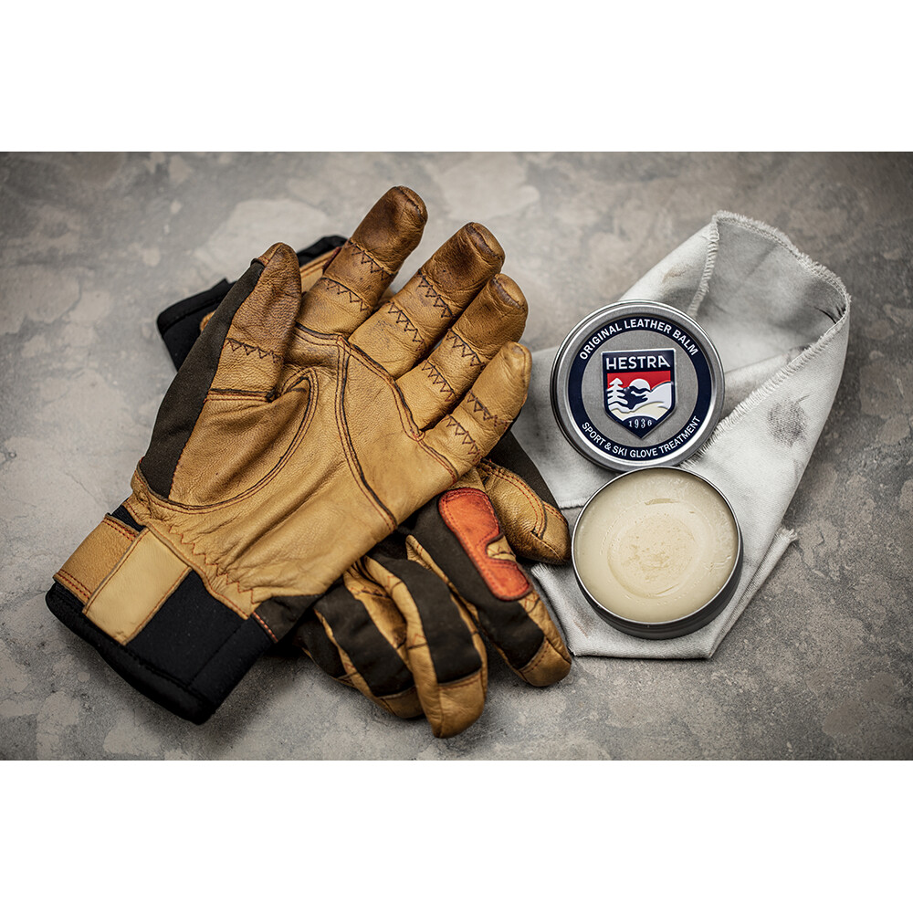 Wosk firmy Hestra, który zwiększa odporność na ścieranie, wodoodporność i ogólną trwałość rękawic.