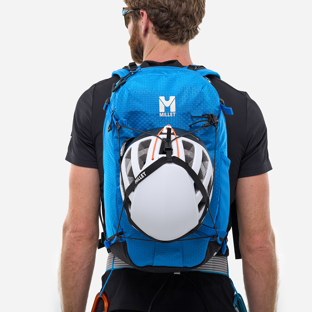 Prosty system mocowania kasku do plecaka w ultralekkiej wersji. W porównaniu do klasycznego uchwytu na kask Millet, ta wersja jest o połowę lżejsza (tylko 30 g). Uchwyt można łatwo przymocować za pomocą czterech haczyków i sznurków do dowolnego plecaka, który ma pętle z przodu. Rozmiar pasuje do różnych typów kasków.