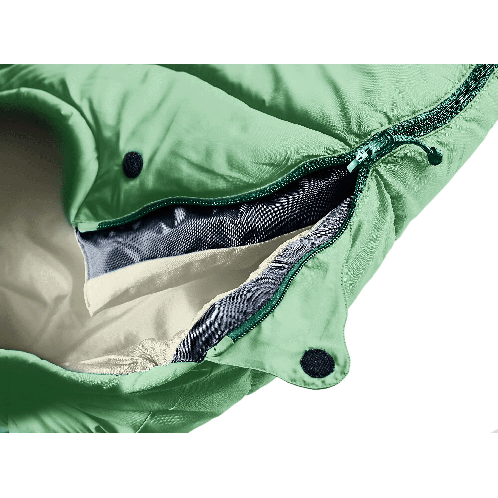 Śpiwór deuter dla najmłodszych poszukiwaczy przygód. Dzięki opcji przedłużenia dziecko będzie z niego korzystać przez kilka sezonów. Podstawowa długość 95 cm zapewnia więcej ciepła w okolicy nóg. Po rozpięciu śpiwór rozciąga się do całkowitej długości zewnętrznej 145 cm, odpowiedniej dla osób o wzroście do 130 cm. Aby ułatwić maluchom wchodzenie do śpiwora, ma on szeroki górny otwór i zamki błyskawiczne po obu stronach. Wypełnienie jest wykonane z ciepłego pustego włókna i zapewni dzieciom wystarczający komfort termiczny podczas letniego biwakowania lub odpoczynku w leśnej szkółce.