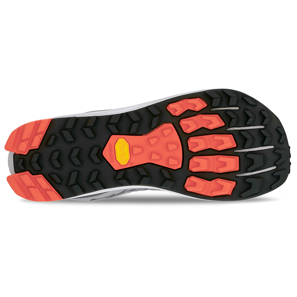 Wszechstronność Lone Peak 9 wynika głównie z podeszwy zewnętrznej Vibram® Megagrip, która oferuje niezrównaną przyczepność na mokrych i suchych nawierzchniach. Dzięki wielokierunkowym wypustkom i podwójnej warstwie pianki EVA w podeszwie środkowej, buty zapewniają średni poziom amortyzacji i zapewniają wygodny krok od trawiastej łąki po skalisty szlak.
