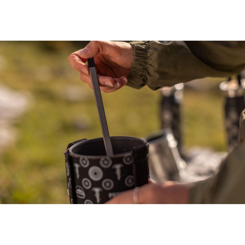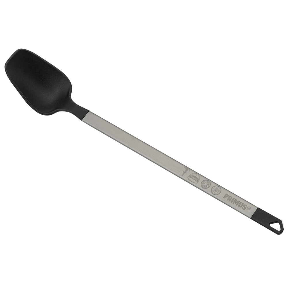 Lekka łyżka podróżna Primus ma przedłużony uchwyt o długości 20 cm. Dzięki temu zawsze możesz sięgnąć do dna torby z odwodnioną żyw nością i nie musisz się martwić o poparzenie rąk podczas mieszania jedzenia gotowanego na kuchence.