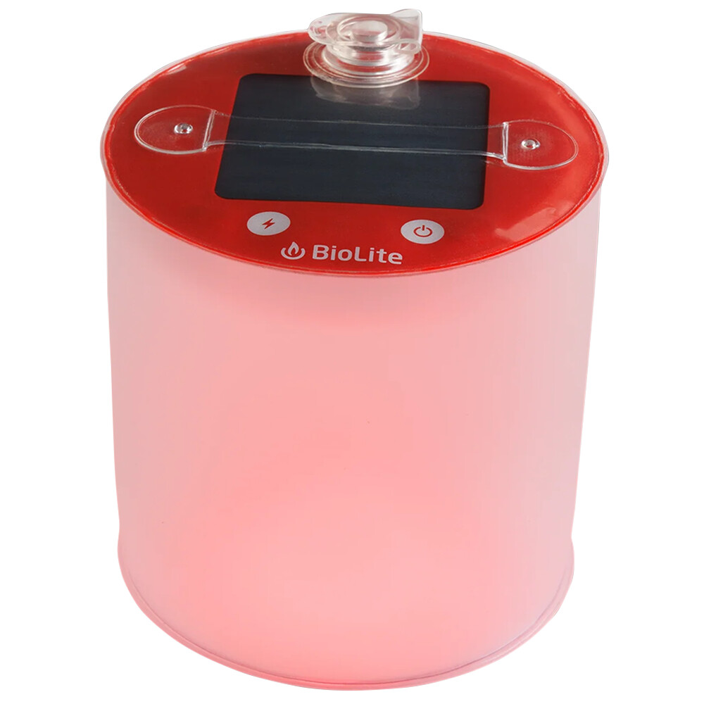 Latarka zapasowa od BioLite, która jest interesująca ze względu na swoją nadmuchiwaną konstrukcję i tryb S.O.S. Lampa jest bardzo lekka i doskonale składana, ponieważ po złożeniu ma tylko 25 mm grubości. Dzięki temu można ją mieć zawsze przy sobie, w plecaku podczas wędrówki, w samochodzie jako zapasowe światło, jako część apteczki pierwszej pomocy lub w domu w przypadku awarii zasilania. Dzięki opcji zasilania energią słoneczną, sprawdzi się również w miejscach pozbawionych elektryczności. Wystarczy nadmuchać latarkę i można korzystać z dwóch trybów świecenia: ciepłego białego światła, migającego, czerwonego światła i funkcji ostrzegawczej S.O.S. Dzięki uchwytowi na górze latarkę można zawiesić i wygodnie przenosić.