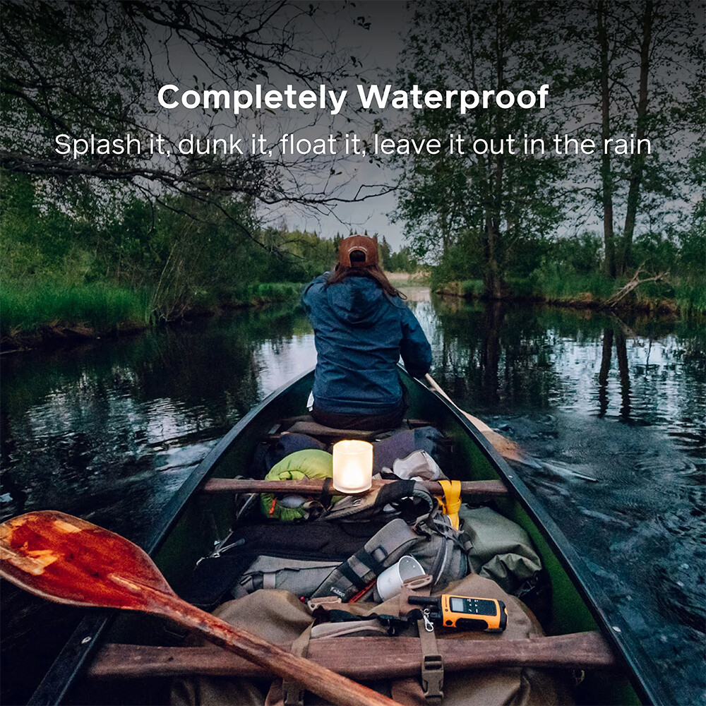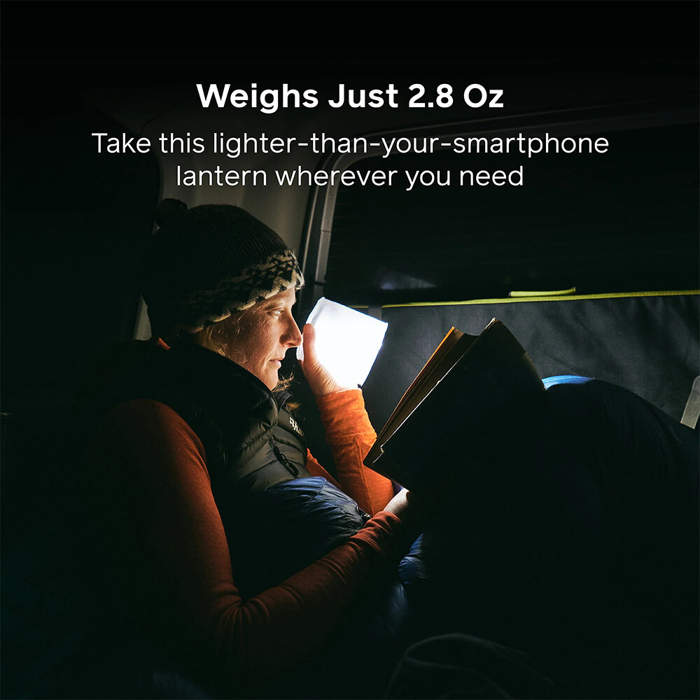 Wydajna nadmuchiwana latarnia z ładowaniem przez USB-C lub wbudowanym panelem słonecznym. Posiada funkcję power banku. Bardzo kompaktowa, 38 mm grubości po złożeniu. Cztery tryby ciepłego białego światła o czasie działania 110 godzin.