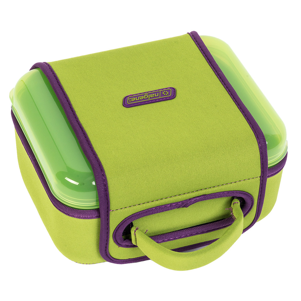 Poręczne pudełko na przekąski od Nalgene to idealny wybór dla dzieci w szkole. Pudełko jest wykonane z bardzo wytrzymałego tworzywa sztucznego i jest również pokryte neoprenową osłoną z rzepem. Dzięki uchwytowi opakowanie jest łatwe do przenoszenia, a także pomaga zapewnić lepszą izolację. Wnętrze pudełka można podzielić wkładem chłodzącym w trzech różnych pozycjach, co ułatwia oddzielanie różnych rodzajów żywności. Pokrywa jest zdejmowana i może być używana jako talerz. Pokrywę z neoprenu można włożyć do pralki, a pojemnik do zmywarki.
