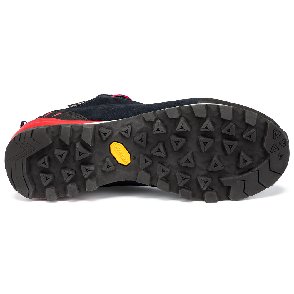 Podeszwa jest podstawą każdego wysokiej jakości buta podejściowego, dlatego Makra Pro Low Lady GTX posiada specjalnie zaprojektowaną podeszwę Vibram® Makra. Dzięki optymalnej sztywności i grubszemu wzorowi gwarantuje idealne dopasowanie do powierzchni. Wydłużone sznurowanie i łączona podeszwa środkowa również przyczyniają się do ogólnego poczucia bezpieczeństwa. Poliuretanowy klin pod piętą zapewnia doskonałą amortyzację, a pianka EVA w przedniej części stopy zwiększa wrażliwość palców.