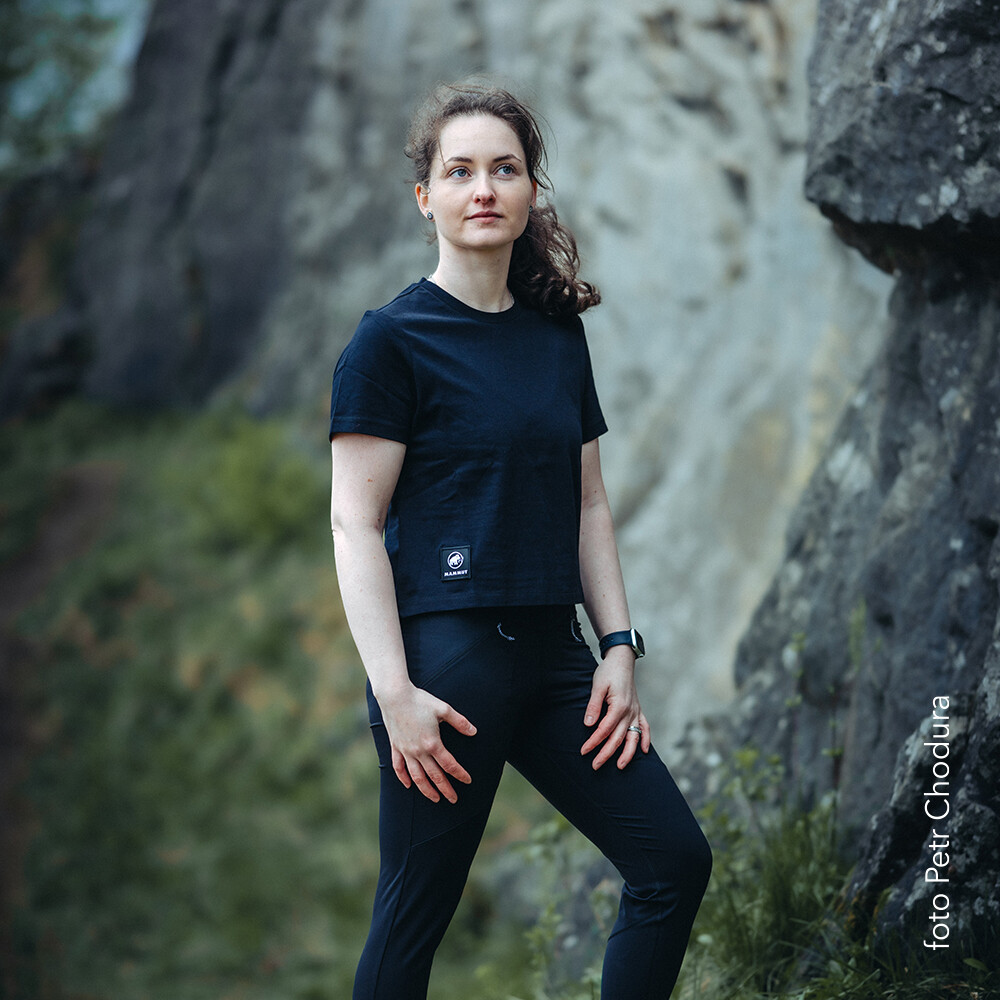 Damska koszulka Massone T-Shirt Cropped Women Patch marki Mammut to idealny wybór na wspinaczkę i czas wolny.