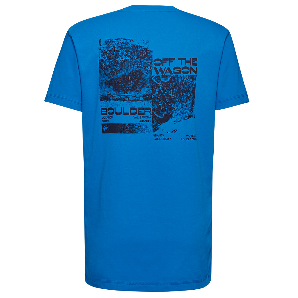 Koszulka została wykonana z miękkiej bawełny organicznej. Nadruk nawiązuje do boulderowego problemu "Off the Wagon (8c )" w Val Bavona. Krój z krótkim rękawem i okrągłym dekoltem zapewnia wygodę.