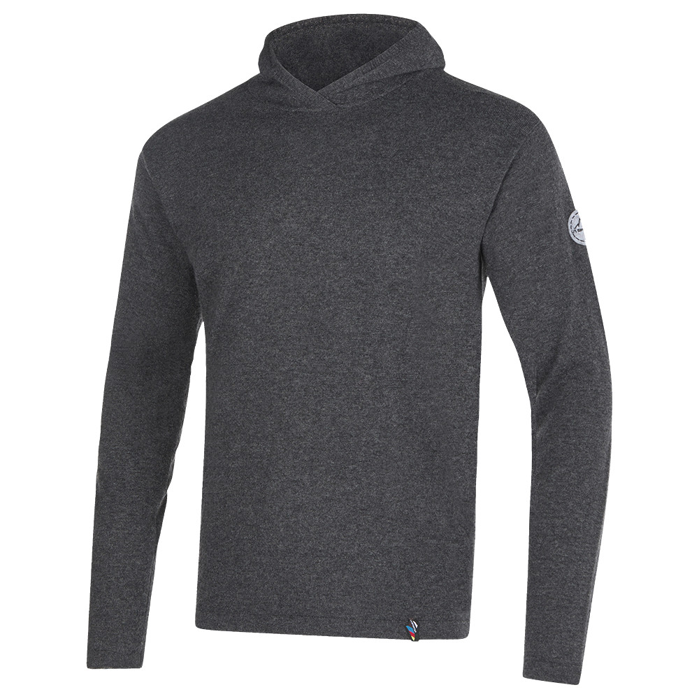 Sweter jest wykonany z wełny i poliamidu. Dzięki temu sweter jest ciepły i oddychający. Krój z kapturem, który tworzy ładną i praktyczną nakładkę przy dekolcie, idealnie pasuje. Logo na rękawie i dolnej krawędzi ładnie uzupełnia czysty design swetra. Rękawy i dolna krawędź są wykończone wąskim obszyciem.