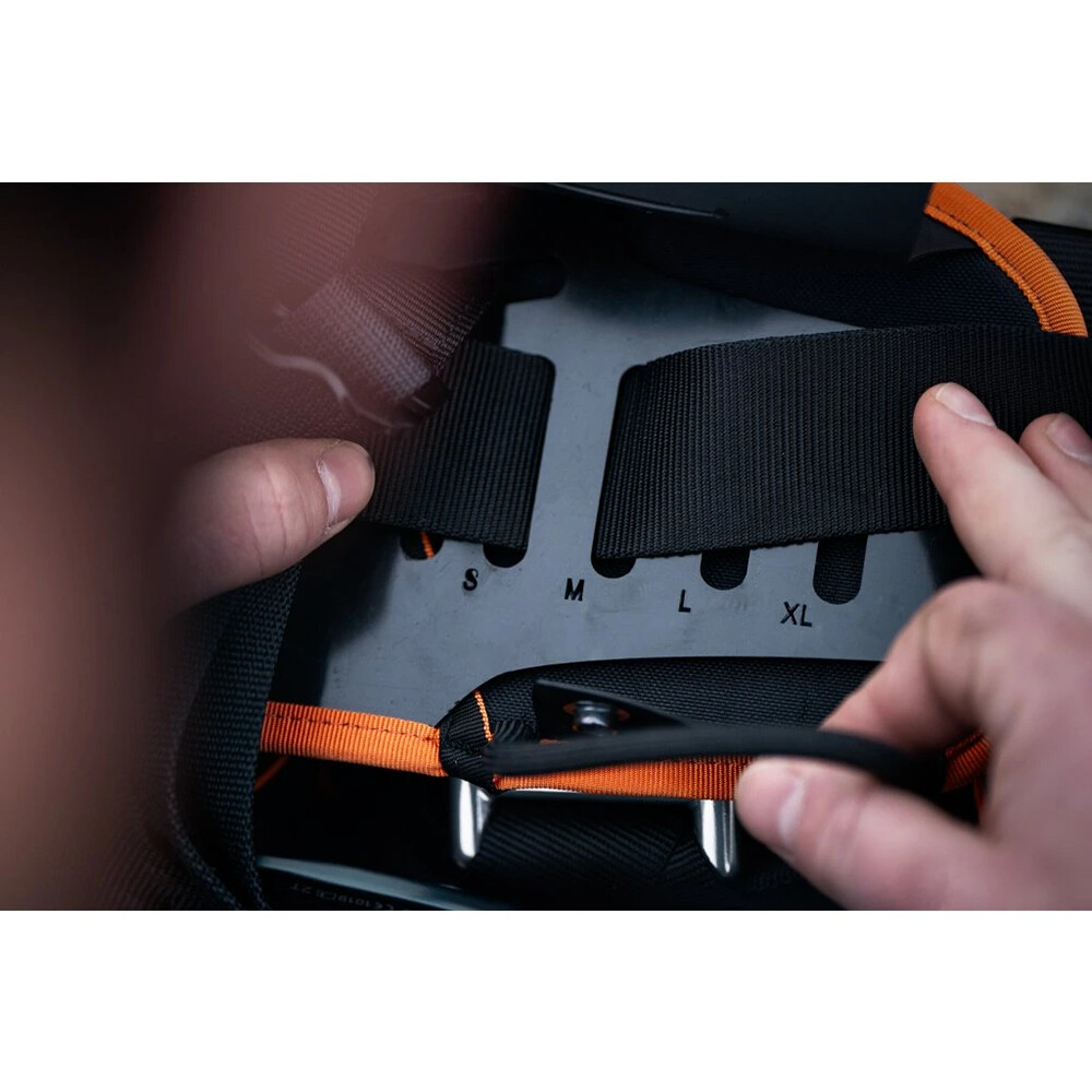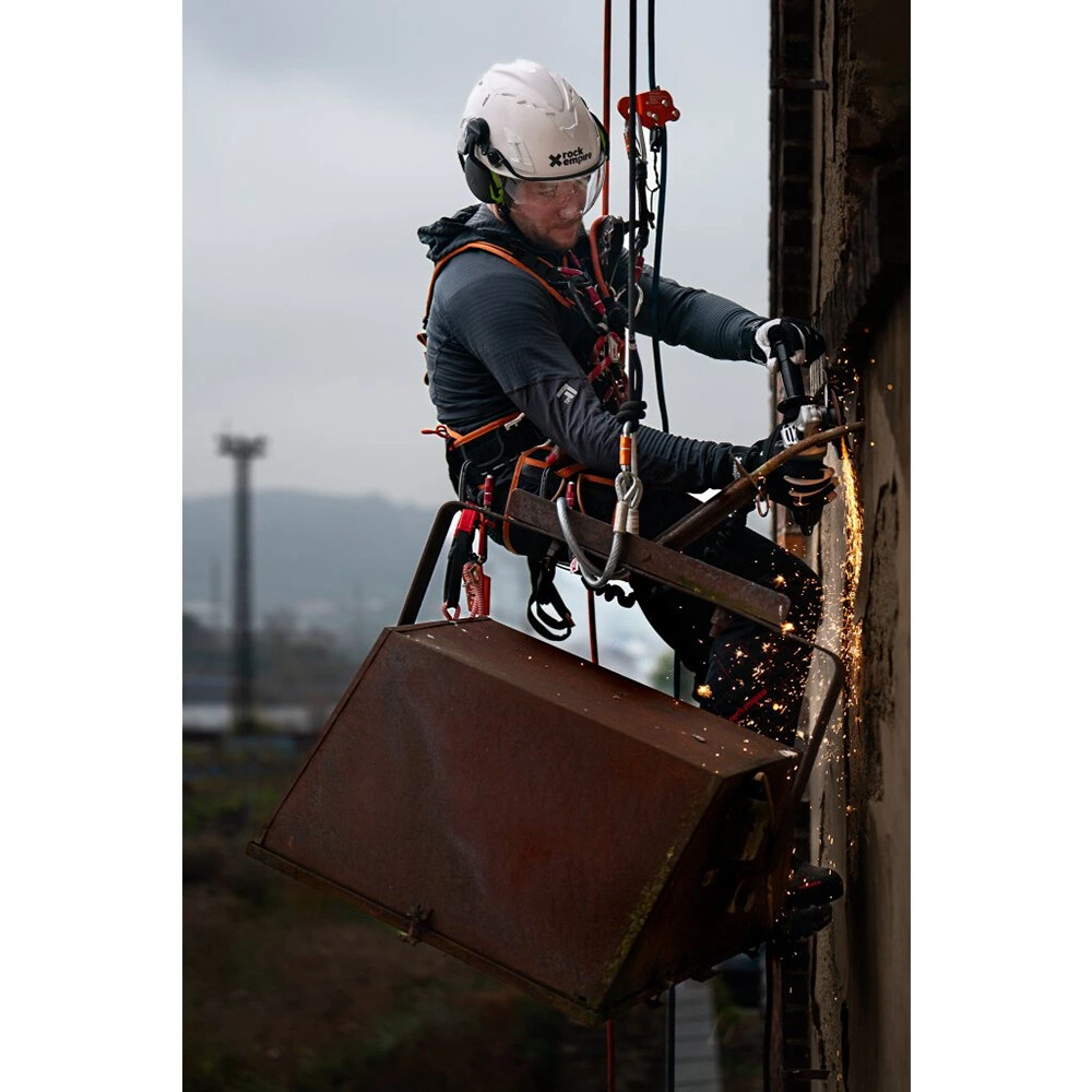 Uprząż na całe ciało od Rock Empire, zaprojektowana do pracy i wyposażona w rewolucyjny system regulacji talii. Obejmuje on cały zakres rozmiarów. Paski naramienne można odpiąć.