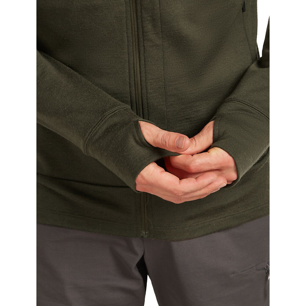 Bluza została wykonana z wełny Merino, która jest miękka, izolująca, oddychająca i utrzymuje ciepło nawet wtedy, gdy jest mokra. Dzięki właściwościom antybakteryjnym bluza pozostanie dłużej świeża nawet bez częstego prania. Docenisz to szczególnie podczas wielodniowych wędrówek. Zamek błyskawiczny na całej długości ułatwia ubieranie i umożliwia regulację temperatury. Dwie kieszenie na suwak są uzupełnione kieszenią na suwak na piersi. Rękawy zakończone są praktycznymi otworami na kciuki. Płaskie szwy zapewniają dodatkowy komfort podczas noszenia.