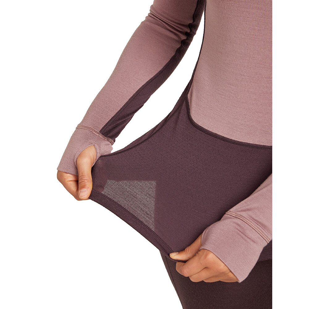 Damska koszulka od Icebreaker zapewnia komfortową izolację dzięki wełnie merynosów. Koszulka ma długie rękawy, przesunięte szwy na ramionach, przedłużony tył, kliny pod pachami i płaskie szwy.