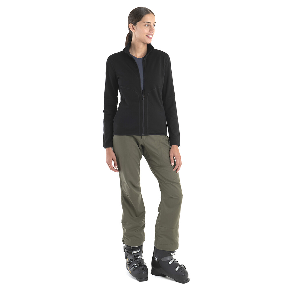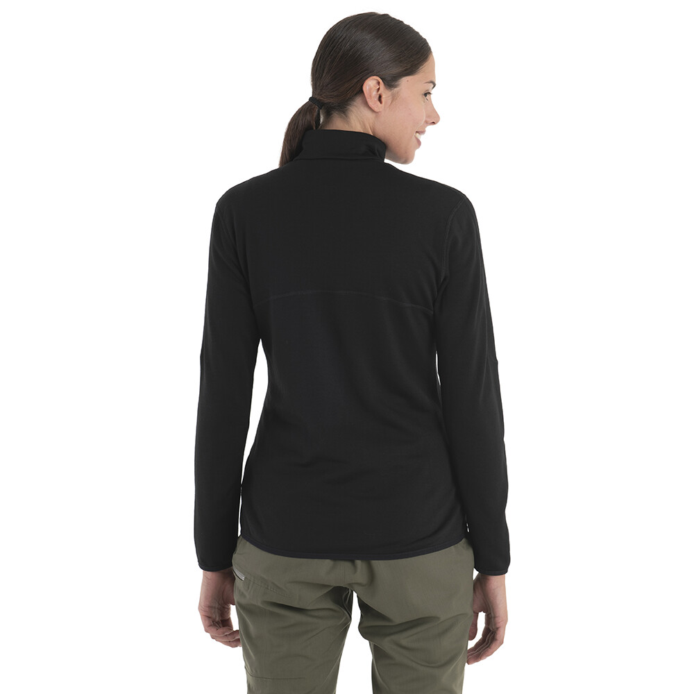 Damska bluza Icebreaker o wąskim kroju zapewnia izolację, oddychalność i swobodę ruchów. Bluza posiada zamek 3/4, raglanowe rękawy, osłonę podbródka, otwory na kciuki i płaskie szwy.