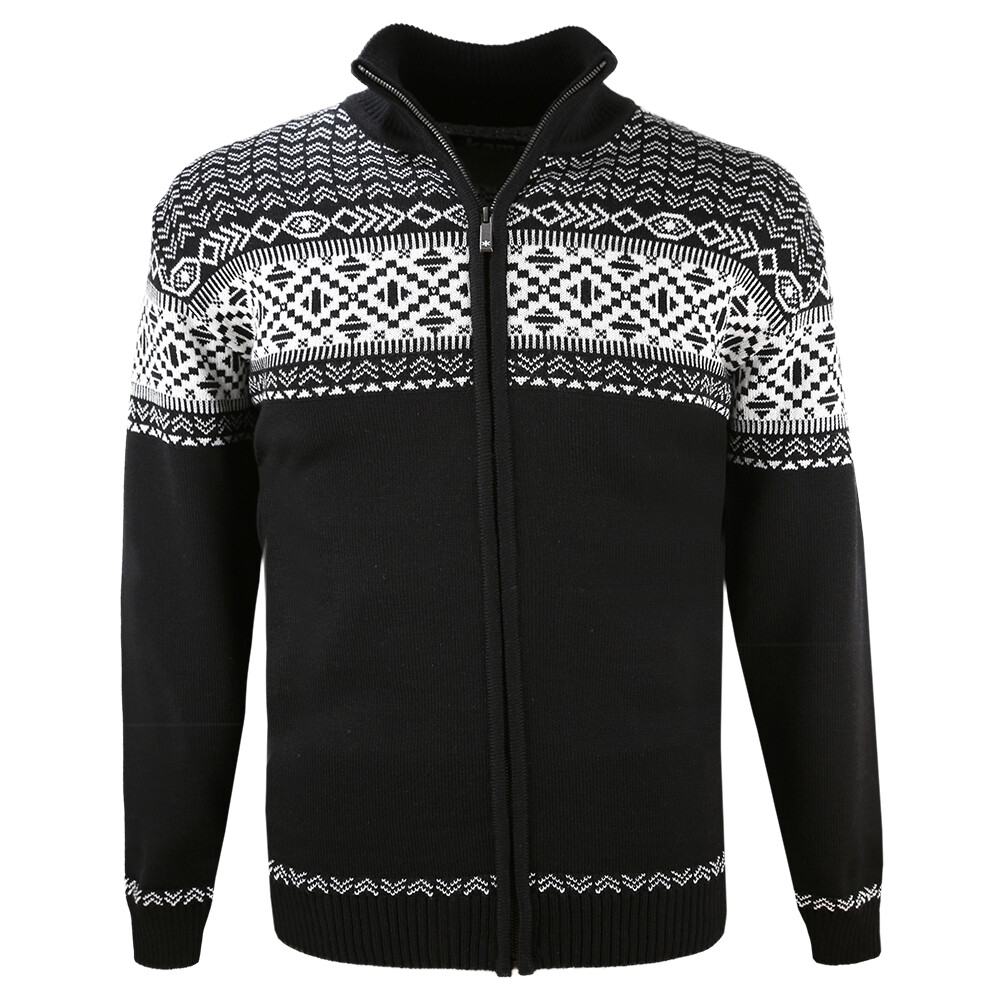 Sweter z wełny merynosów łączący tradycyjny norweski wzór z nowoczesnym krojem i praktyczną stójką zapinaną na zamek. Nadaje się na wycieczki, ale także do noszenia na co dzień.