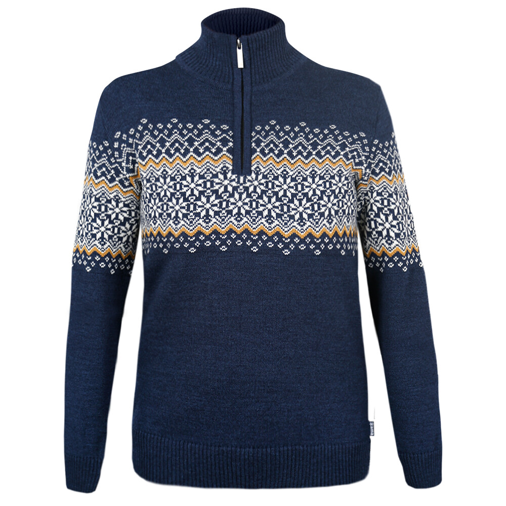 Damski sweter Fjaere jest wykonany w Norwegii z cienkiej wełny jagnięcej. Trwała dzianina i wysoki komfort wełny jagnięcej będą doceniane przez wiele lat. Oryginalny design przyciąga wzrok od pierwszego wejrzenia.