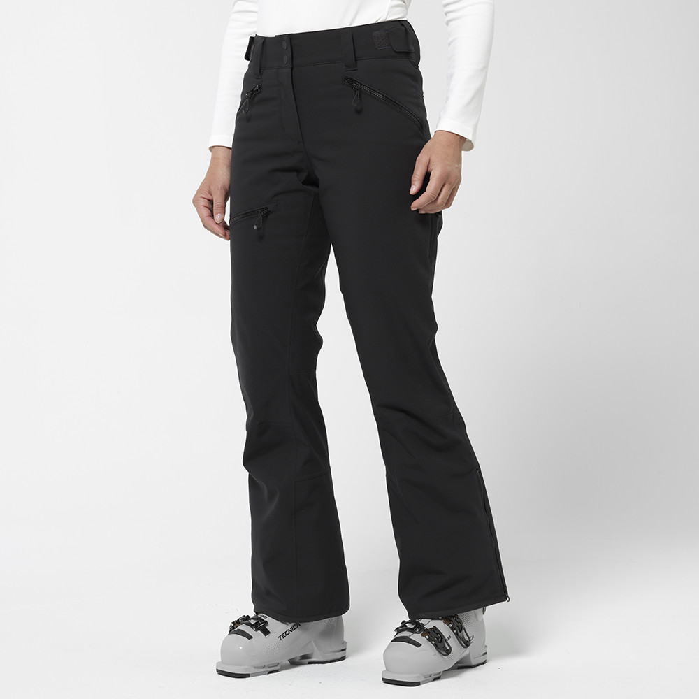 Podwyższony pas z tyłu chroni przed zimnem. Boczny zamek błyskawiczny umożliwia regulację temperatury. Mnóstwo kieszeni na niezbędne drobiazgi. Wzmocnienia u dołu nogawek chronią przed skaleczeniami o krawędzie nart. Wewnętrzne nogawki zapobiegają przedostawaniu się śniegu.