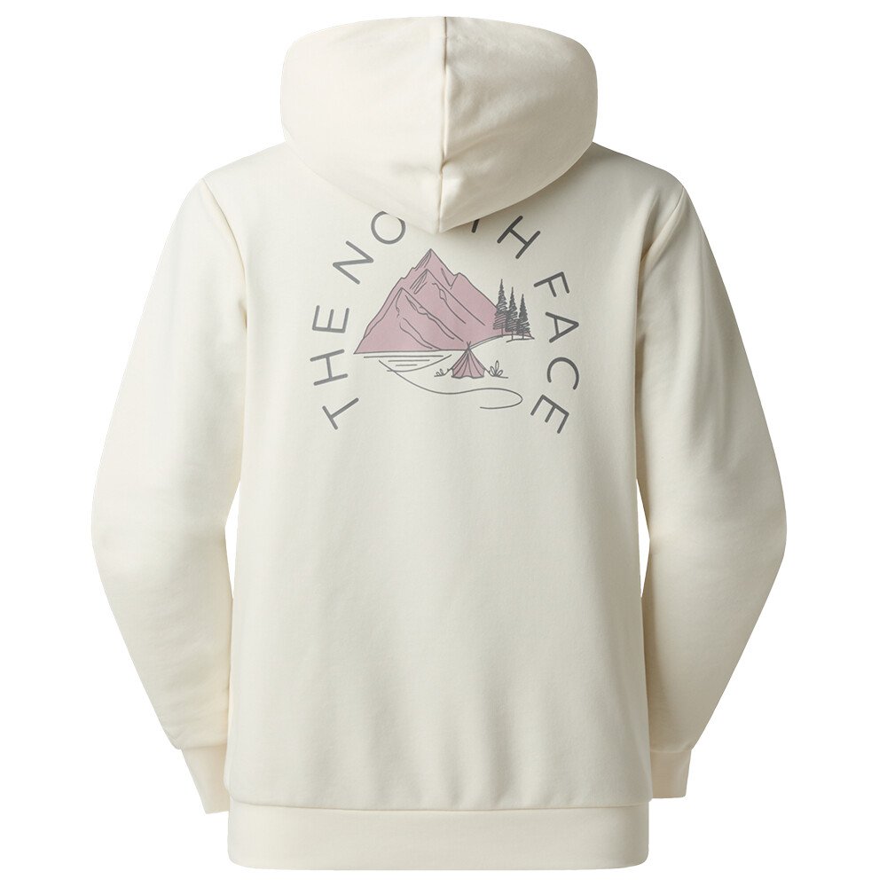 Damska bluza rekreacyjna Monte Regular Hoodie-Graphic marki The North Face zachwyci Cię wygodą i funkcjonalnością. Została wykonana z mieszanki bawełny i materiału syntetycznego. Bluza posiada kieszeń kangurkę oraz niewielką grafikę z przodu i z tyłu.