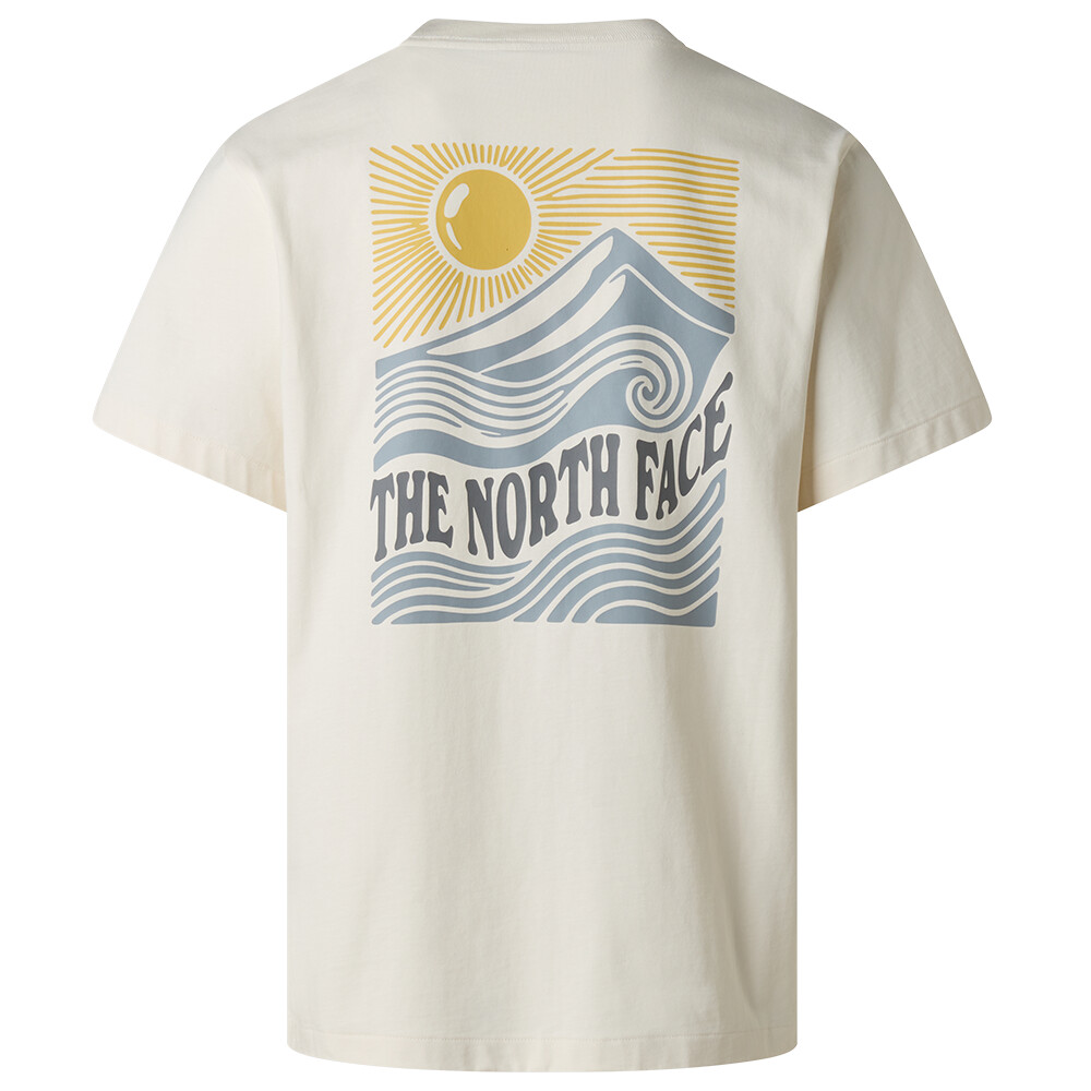 Męska koszulka Mountain Escape Relaxed Short Sleeve Tee - Graphic marki The North Face. Jest wykonana z wygodnej bawełny, a dzięki obniżonym ramionom i luźniejszemu krojowi gwarantuje wygodne noszenie i wylegiwanie się w hamaku.