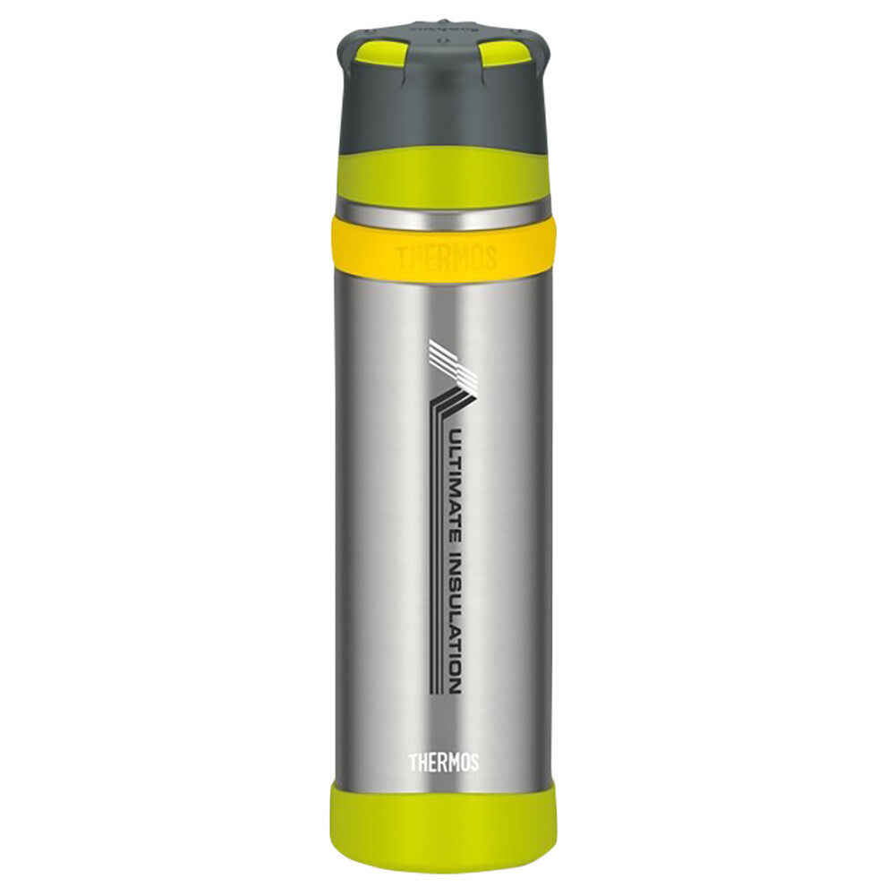 Dwuścienny termos Mountain firmy Thermos jest wykonany z wysokiej jakości stali nierdzewnej, a mimo to jest lekki, porównywalny z termosami wykonanymi z tytanu. Gumowy rękaw na spodzie i antypoślizgowy pierścień pod zakrętką zapewniają bezpieczną obsługę nawet w grubych rękawicach, a także chronią termos w przypadku upadku na ziemię. Podwójną zakrętkę wystarczy poluzować o pół obrotu i można płynnie nalewać. Termos utrzymuje temperaturę gorących napojów przez 36 godzin, a zimnych do 40 godzin.