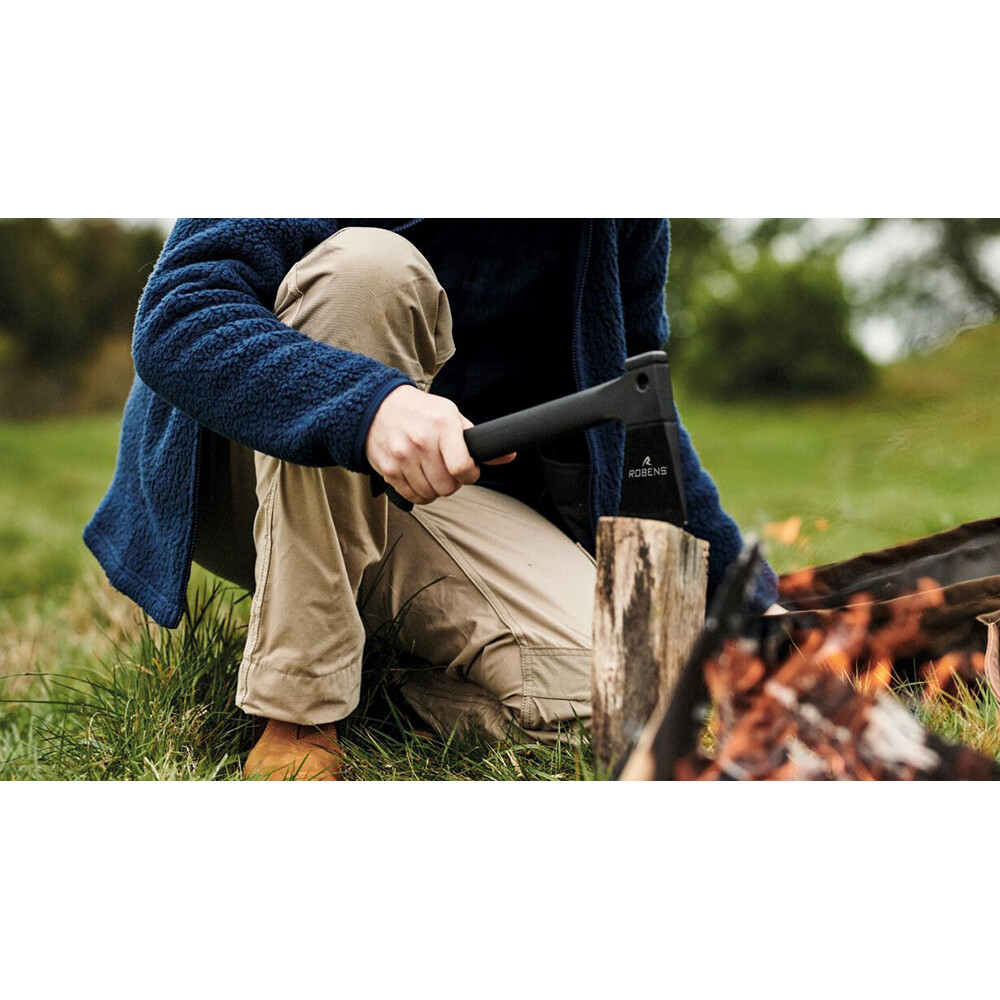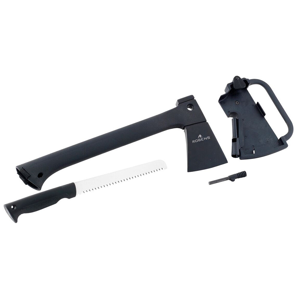 Narzędzie wielofunkcyjne Multi Axe firmy Robens jest idealne do biwakowania oraz przygotowywania i rozpalania ognia. Siekiera z ostrzem ze stali nierdzewnej posiada piłę ręczną o długości ostrza 18 cm wewnątrz rękojeści. Pokrowiec ochronny siekiery zawiera również krzesiwo, którego można użyć do rozpalenia ognia po "uszczypnięciu" ostrza siekiery. Siekiera dobrze prowadzi się wewnątrz plecaka lub można ją przymocować z zewnątrz.