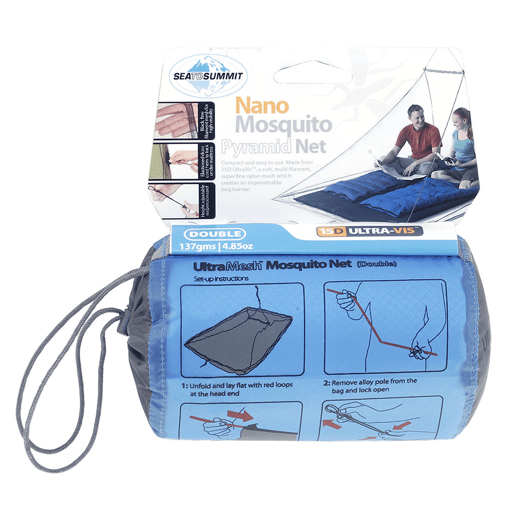 Niezbędne akcesorium podczas podróży do obszarów tropikalnych i innych miejsc, w których występuje obfitość owadów żądlących. Ultralekka moskitiera, która niezawodnie chroni przed ryzykiem zarażenia się chorobami przenoszonymi przez komary i inne owady. Dzięki ultradrobnej siateczce (15D Ultra-Vis™) doskonale przepuszcza powietrze, a jednocześnie pozwala na spakowanie jej do miniaturowego opakowania.