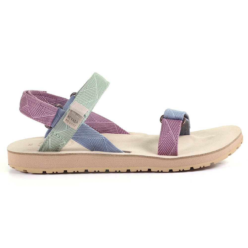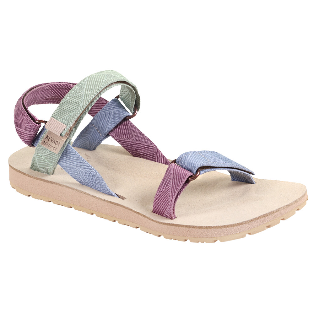 Oparte na popularnym modelu Classic, damskie sandały Nevada Tri-color Fields marki Source zapewniają atrakcyjny, miejski design oraz długotrwały komfort. Podeszwa ma wzór zapewniający przyczepność na różnych nawierzchniach. Wszystkie paski są regulowane za pomocą rzepów i zakończone metalową klamrą. Wkładka wykonana jest z wygodnej mikrofibry, która sprawi, że stopy poczują się jak w bawełnie.