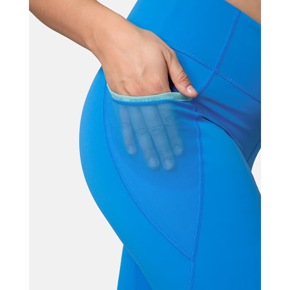 Damskie legginsy treningowe. Lekki, rozciągliwy w 4 kierunkach materiał jest oddychający i szybkoschnący. Szeroki elastyczny pas zapewnia idealne dopasowanie. Legginsy mają klin w kroku, płaskie szwy i praktyczną kieszeń boczną.