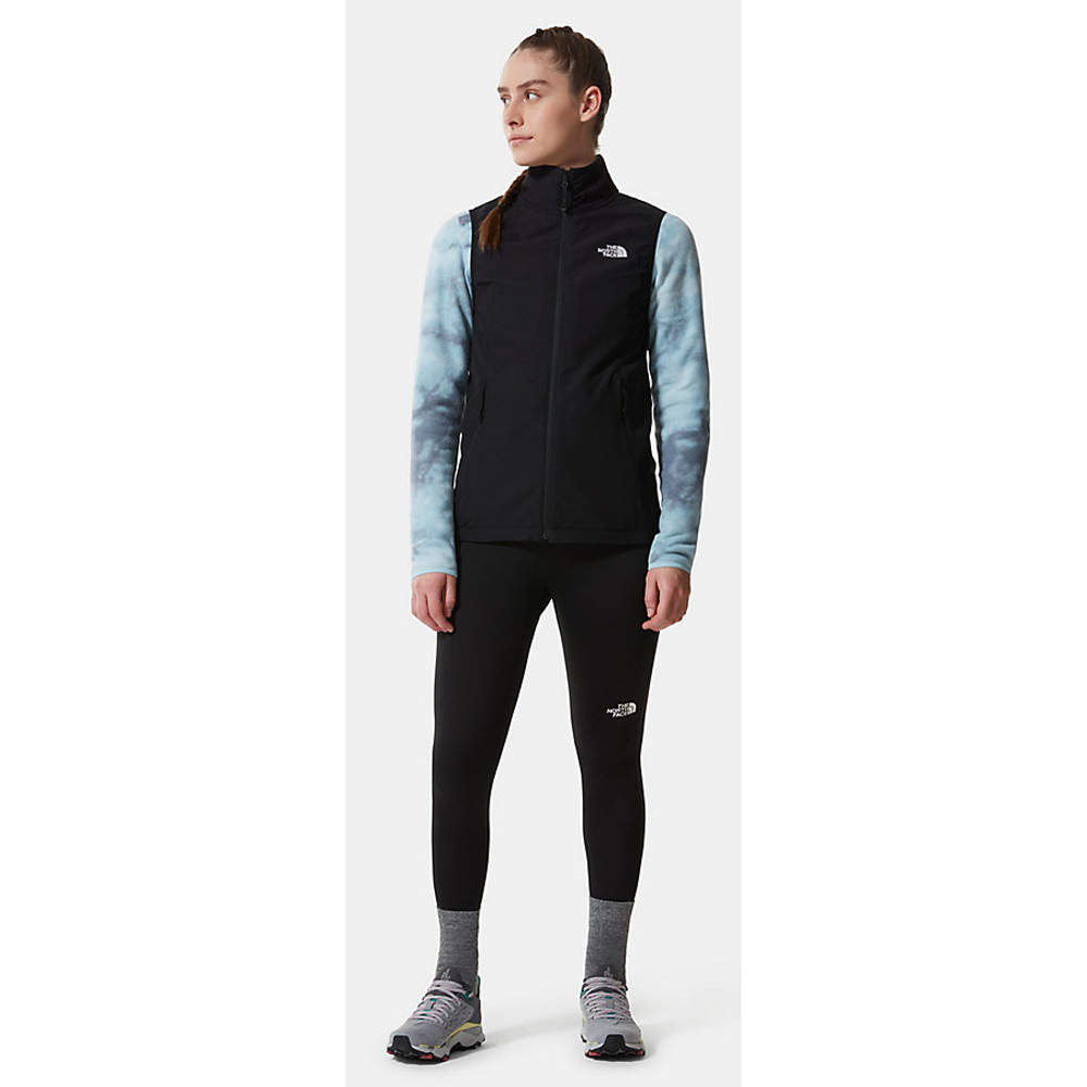 Klasyczna damska kamizelka softshellowa z materiału Nimble amerykańskiej marki The North Face. Kamizelki to praktyczny element odzieży, który można nosić podczas uprawiania sportów takich jak narciarstwo biegowe czy jazda na rowerze, a także w górach podczas trekkingu. Elastyczny materiał zwiększa komfort noszenia i chroni ciało przed wiatrem i zimnem.