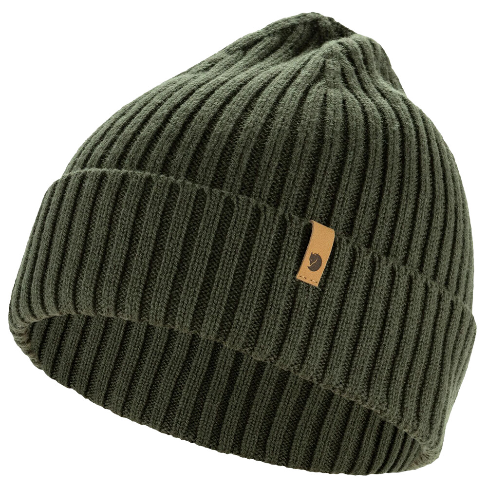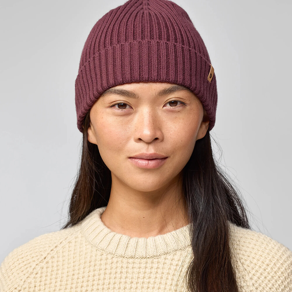 Dzianinowa czapka Övik 365 Hat szwedzkiej firmy Fjällräven zapewni Ci przyjemne ciepło, niezależnie od tego, czy wybierasz się w góry, czy do pracy. Szerokie składane rondo ze skórzanym logo można dopasować do własnych potrzeb.